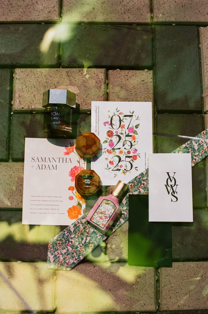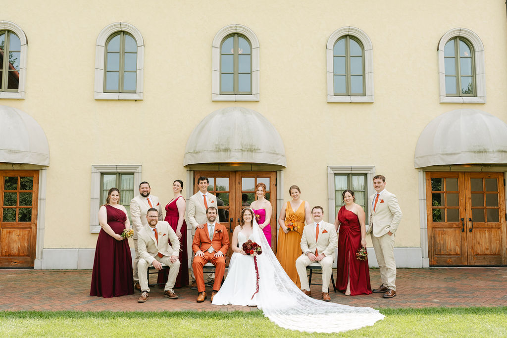 Sam wanted color, and wow, did she get it. Reds, oranges, pinks—all those bold, fiery tones that felt both lively and elegant. You could feel the energy in the palette alone. And yeah, it was one of those classic Midwestern summer days: hot, muggy, slightly sticky, but with the sun putting in overtime to make sure every color hit just right. The light danced off the vineyard, giving everything that cinematic glow photographers pray for.