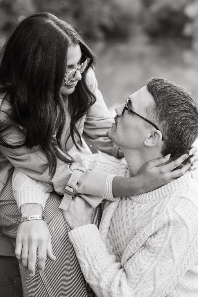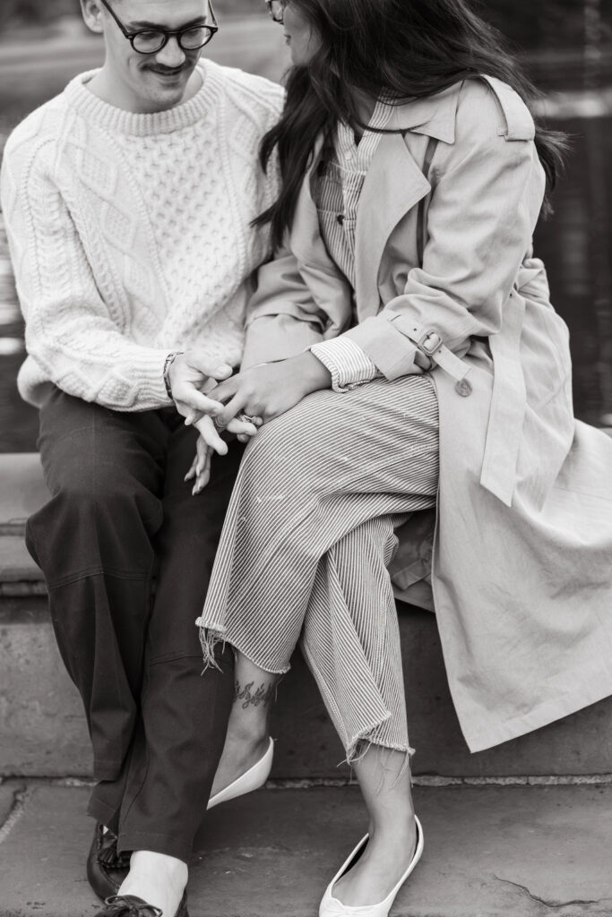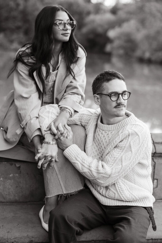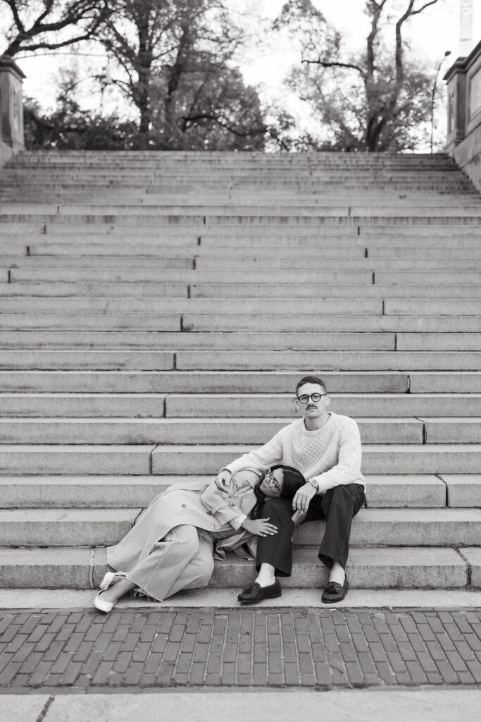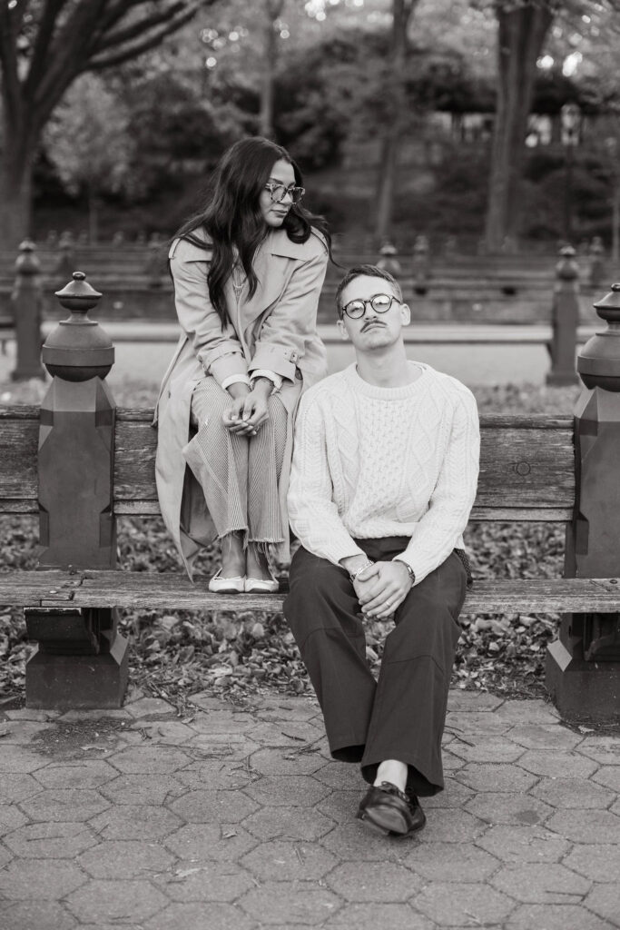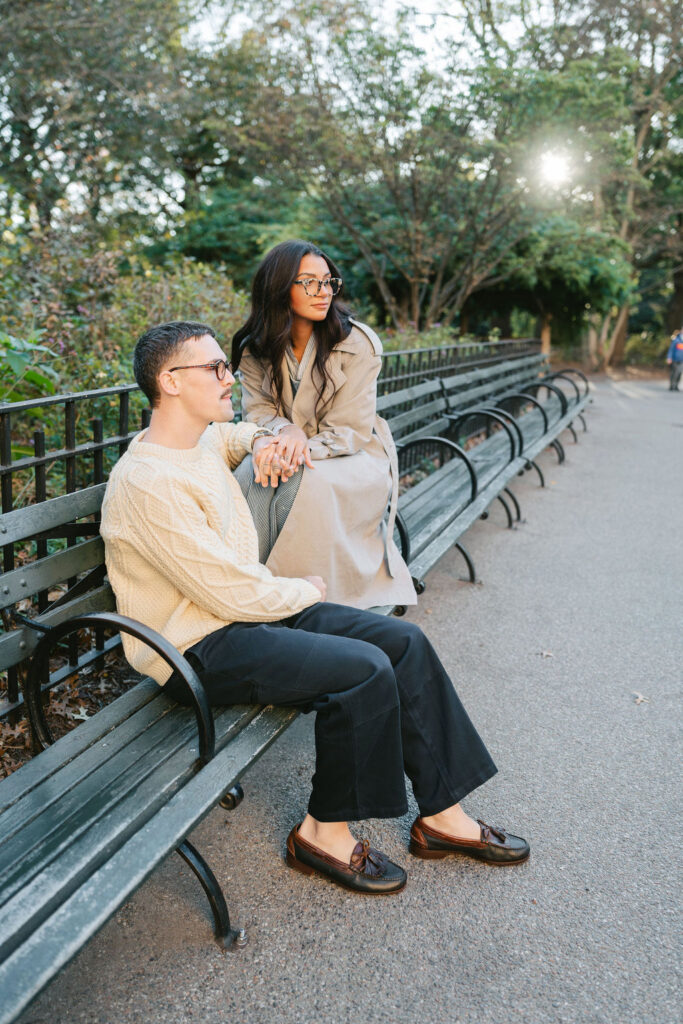 By the time I met Timothy and Noelle at Bethesda Fountain, the park still had that soft, sleepy glow. These two showed up looking effortlessly cool. Timothy wore a cream cable-knit sweater, and Noelle rocked a long vintage trench layered over relaxed denim.
