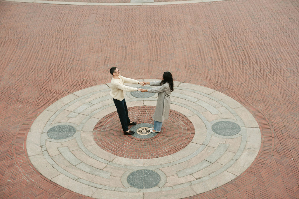 It was just us, the fountain, and that golden morning light bouncing off the arches. As a photographer, it was a total dream. I shot the whole session in both film and digital because you can’t beat the texture and warmth of film when you have natural chemistry in front of you.