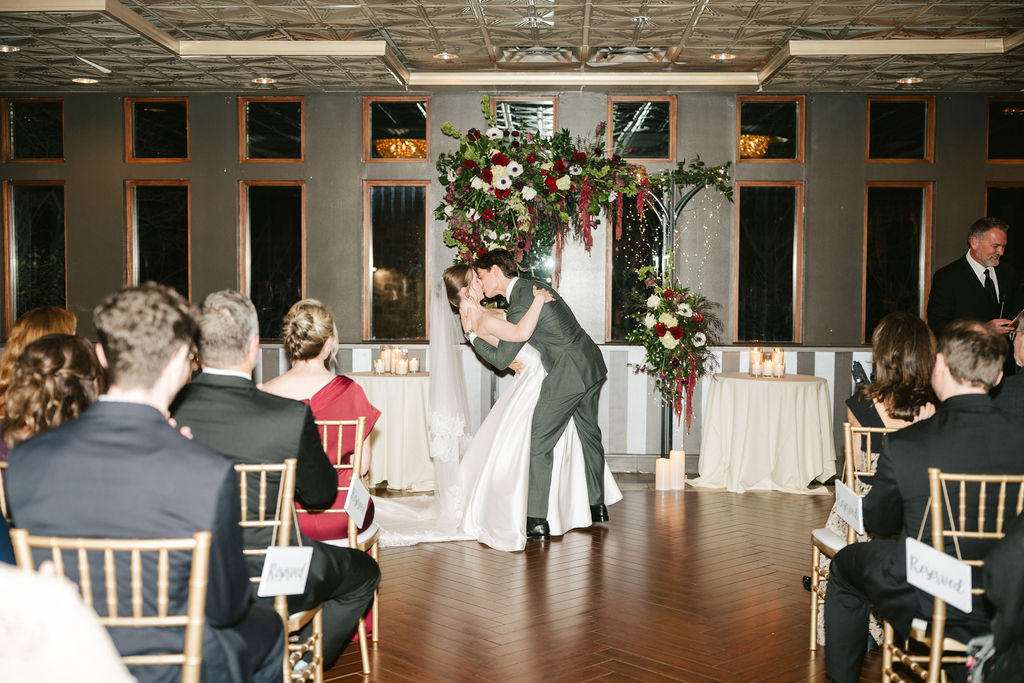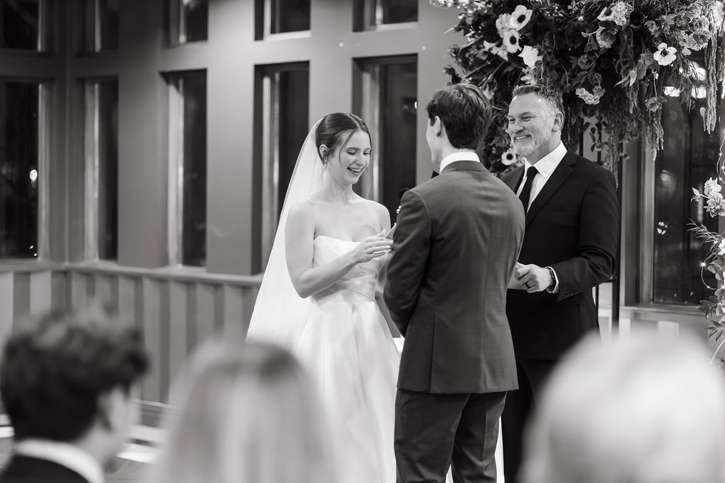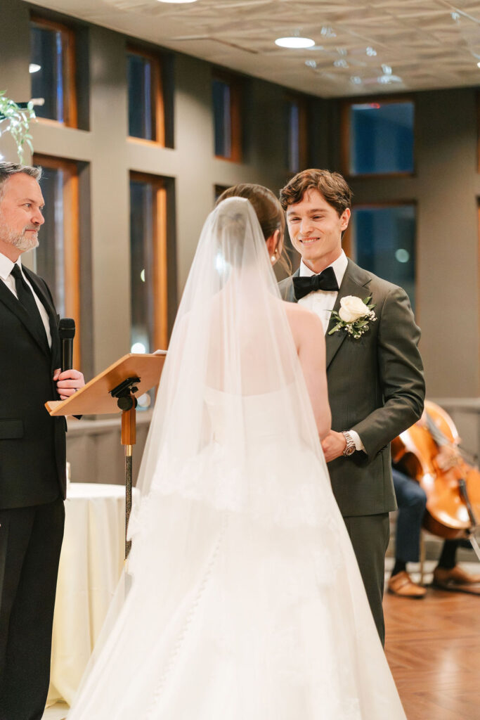 That shared curiosity naturally led them to The Van Dusen Mansion. Its historic elegance felt like a collaborator. Even with an unseasonably warm November day hovering around 60 degrees (truly unhinged Midwest behavior), they stuck with their original plan and held the ceremony inside the ballroom.
